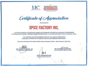 デジタル・トランスフォーメーションを⽀援するスパイスファクトリー株式会社(本社:東京都港区、代表取締役CEO:高木 広之介)は、フィリピン・セブ島北部で発生した地震および中央部を襲った大型台風の被災地復興支援のため、セブ大学の支援受付窓口へ寄付を行いました。