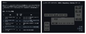 左:AIによるコード解析結果のサマリー(EOL・リスクの可視化)右:AI解析によるアーキテクチャ可視化と再設計イメージ